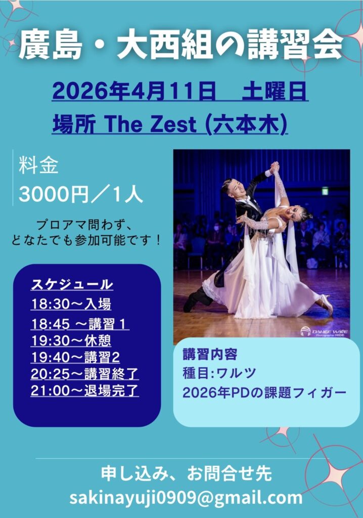 六本木 The Zest にて講習会を開催します! 今回のテーマは「ワルツ」 2026年PDの課題フィガーを中心に、すぐに使えるポイントを分かりやすく解説します。 プロ・アマ問...