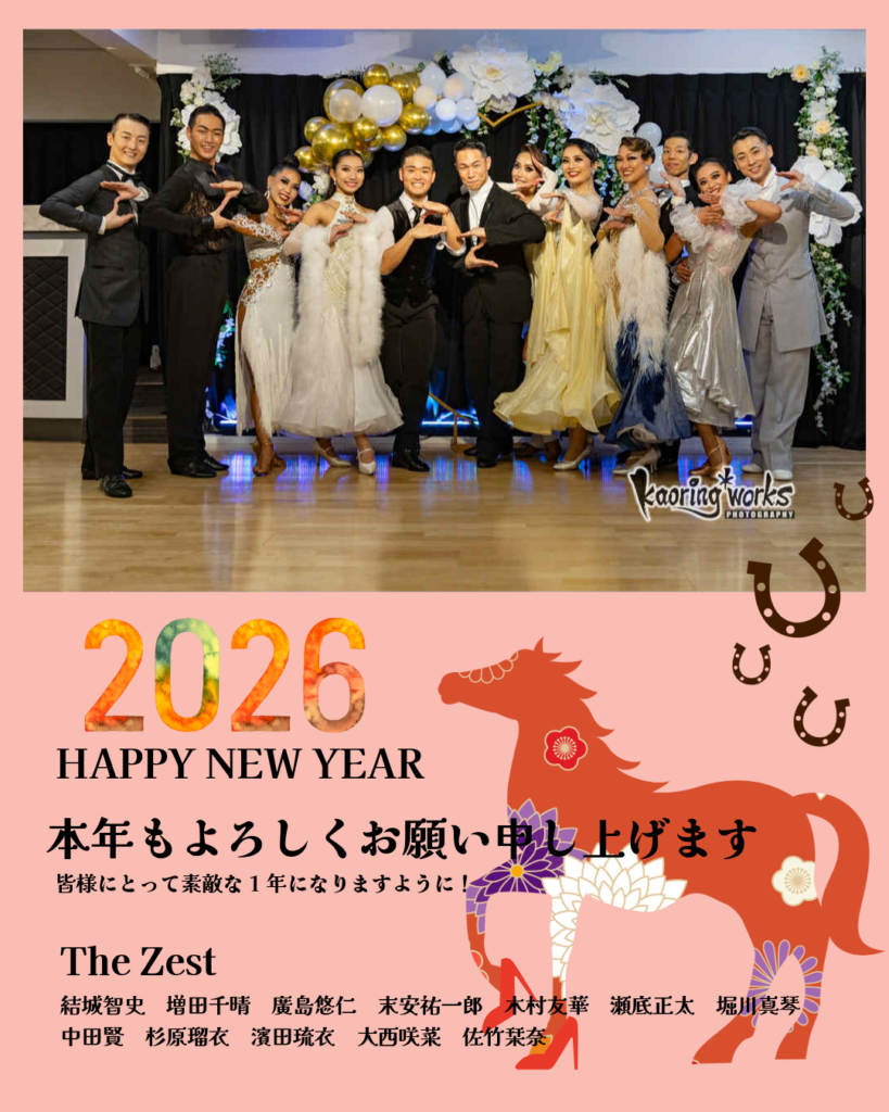 皆様のダンスがよりいっそう「ウマ🐴」くなるよう、そして皆様の毎日が何事も「ウマ🐴」くいく一年となりますよう、スタッフ一同、情熱(Zest)全開でサポートさせていただきます。